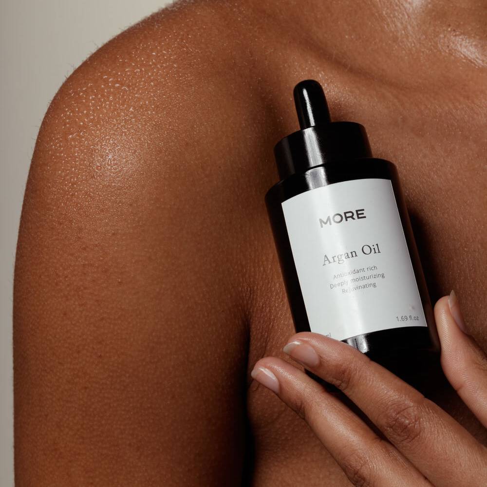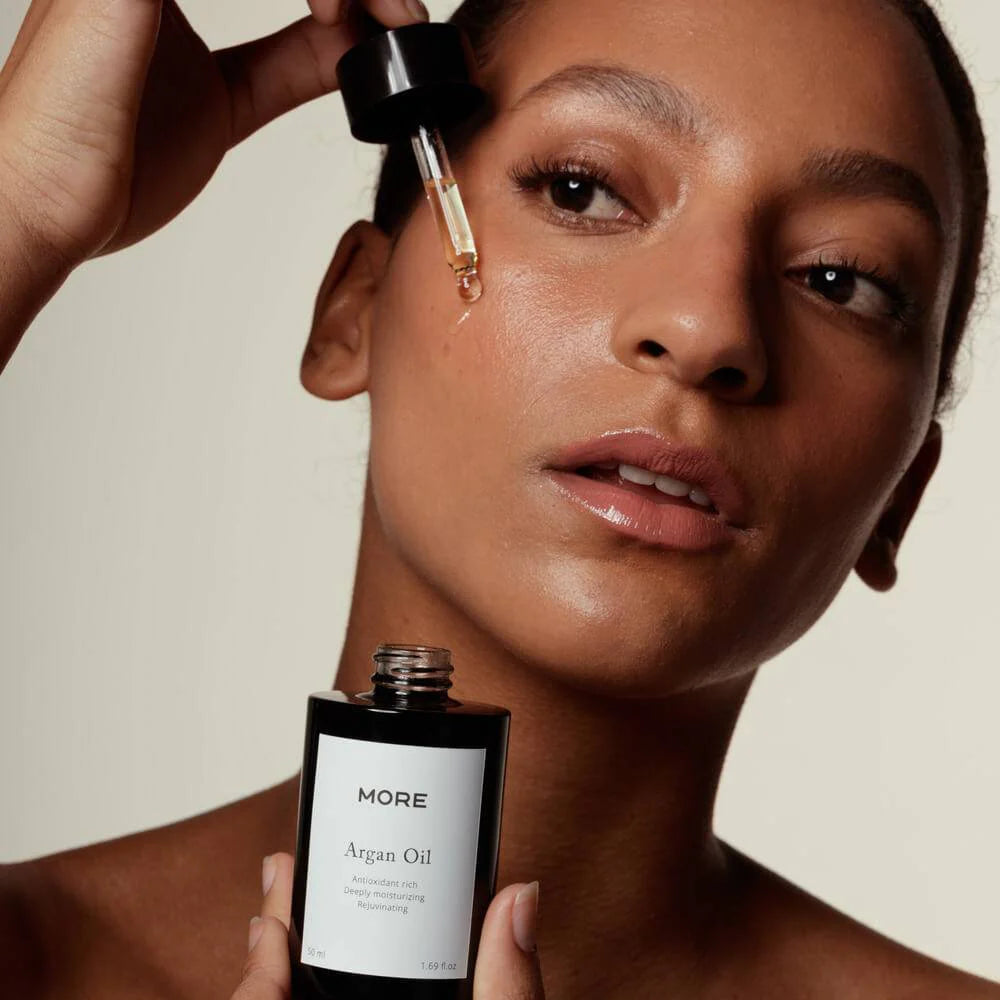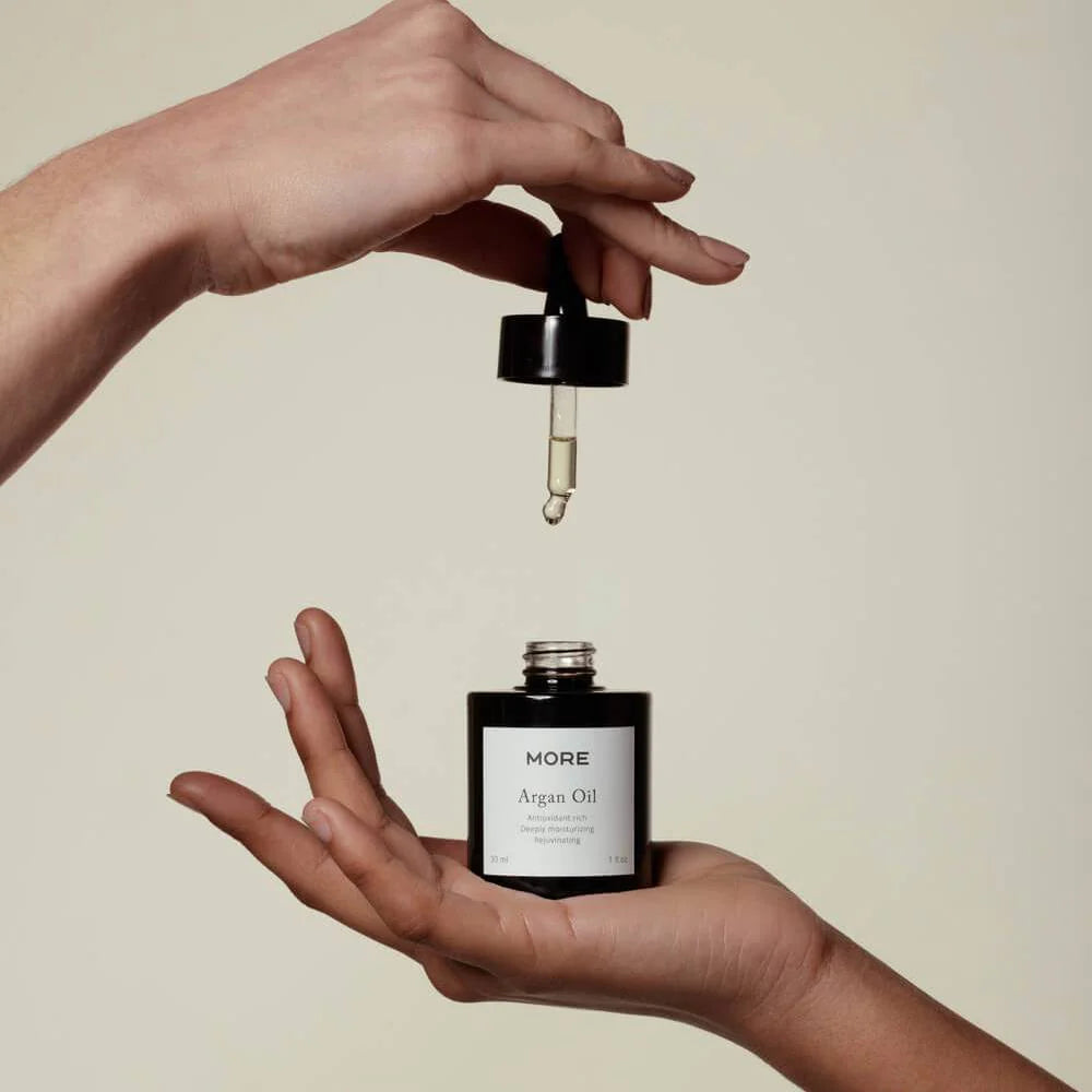 - MORE Arganolie is rijk aan vitamine E, antioxidanten en is effectief in het verzachten en het geven van glans aan zowel huid als haar. Je huid en haren zullen heerlijk soepel en zacht aanvoelen na gebruik!