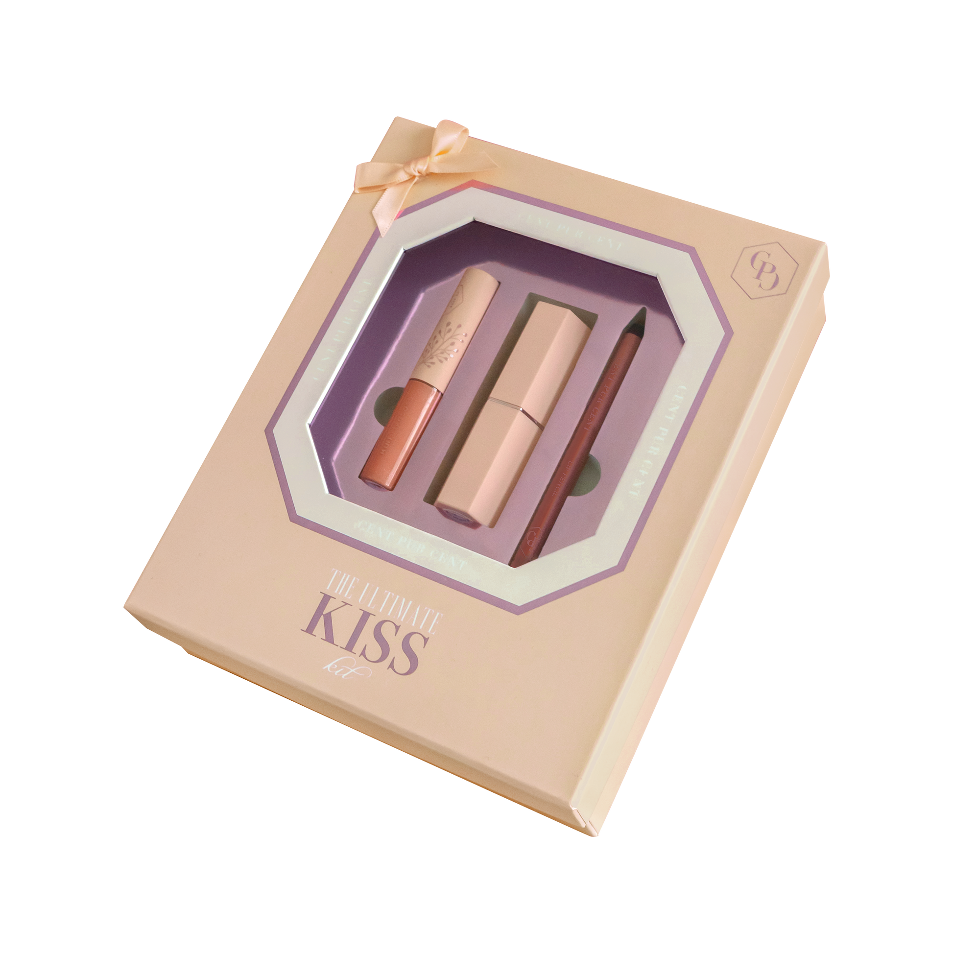 Met The Ultimate Kiss Kit creëer je de perfecte liplook! Deze prachtige set bevat alles wat je nodig hebt voor stralende lippen: een mini lipgloss in de zachte nude tint Peach Spritz, een fluweelzachte lipstick in de kleur Peach en een bijpassend lipliner om je look compleet te maken.